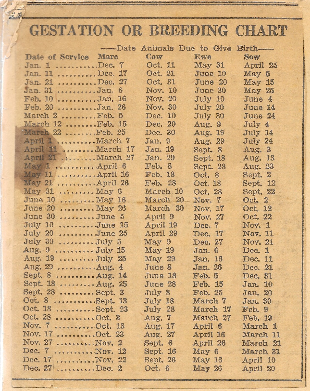 P415Gestation Or Breeding Chart Unknppr