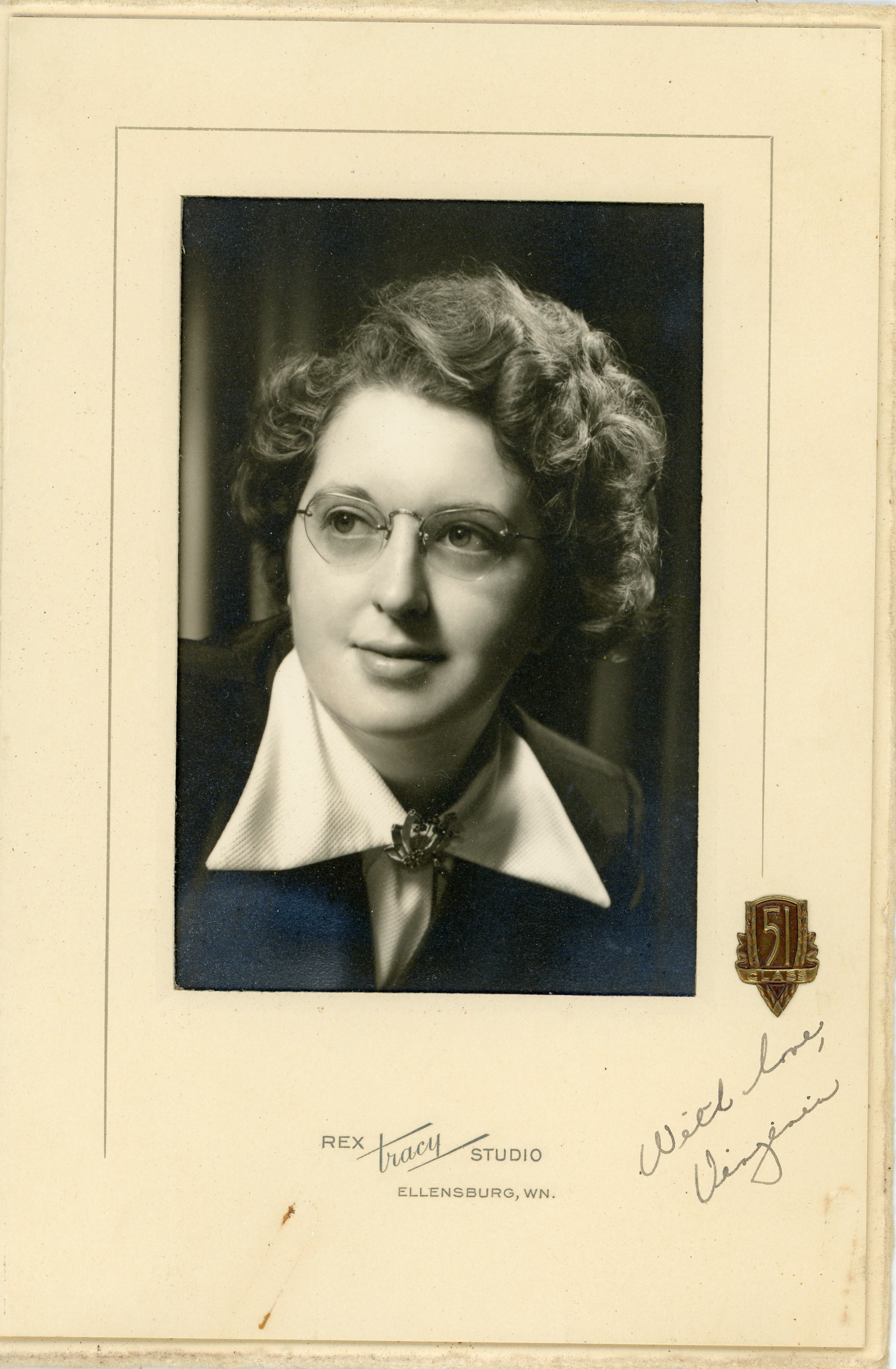 P285 1948 1949Virginia Lee Wilson Dated Hairlitebrowneyesgreybluedressaquabluewithwhiteembroidery Ellensburg WA