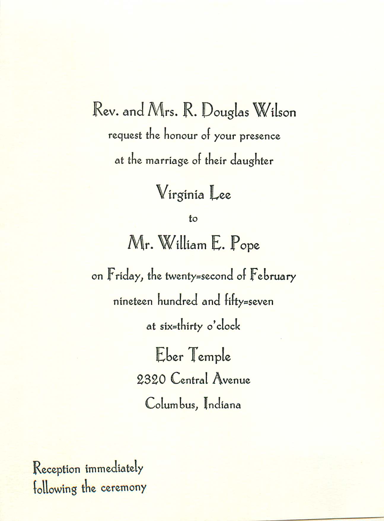 P413 1957Nellie Roan Reginld Douglas Wilson Greenville SC Dated 1957Nellie Douglas Wilsonat Bob Jones Univ Greenville SC